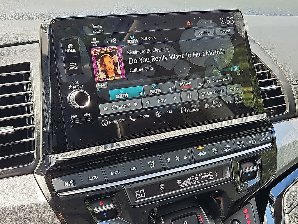 - Radio: 160-Watt AM/FM/HD/SiriusXM Audio System -inc: 7 speakers including subwoofer, 9" color touchscreen display, 7" TFT Meter, Bluetooth® HandsFreeLink, Bluetooth® streaming audio, HondaLink, HondaLink subscription services, Speed-Sensitive Volume Compensation (SVC), Radio Data System (RDS), wireless Apple CarPlay compatibility, wireless Android Auto compatibility, Wi-Fi Hotspot capability, 2.5-amp USB smartphone/audio interface, CabinTalk in-car PA system, advanced rear entertainment system w/12.8" high-resolution screen, HDMI interface w/USB-A, headphone jack (3rd row), Honda Satellite-Linked Navigation System w/voice recognition and Honda HD digital traffic, CabinWatch rear seat monitor, illuminated steering wheel-mounted controls and fin-type roof-mounted antenna, All SiriusXM services require a subscription, sold separately by SiriusXM after the trial period, If you decide to continue service, the plan you choose will automatically renew at the then-current rates, Fees and taxes apply, See the SiriusXM customer agreement and privacy policy at www.siriusxm.com for full terms and how to cancel, which includes calling 1-866-635-2349, Available in the 48 contiguous U.S, and D.C, Some services and features are subject to device capabilities and location restrictions, All fees, content and features are subject to change, SiriusXM, Pandora and all related logos are trademarks of Sirius XM Radio Inc, and its respective subsidiaries