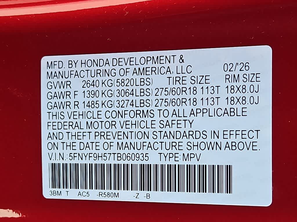 VIN: 5FNYF9H57TB060935