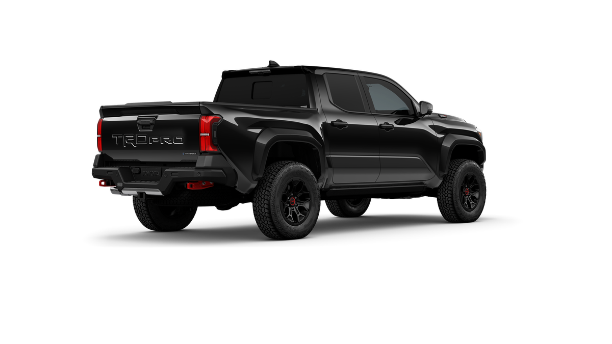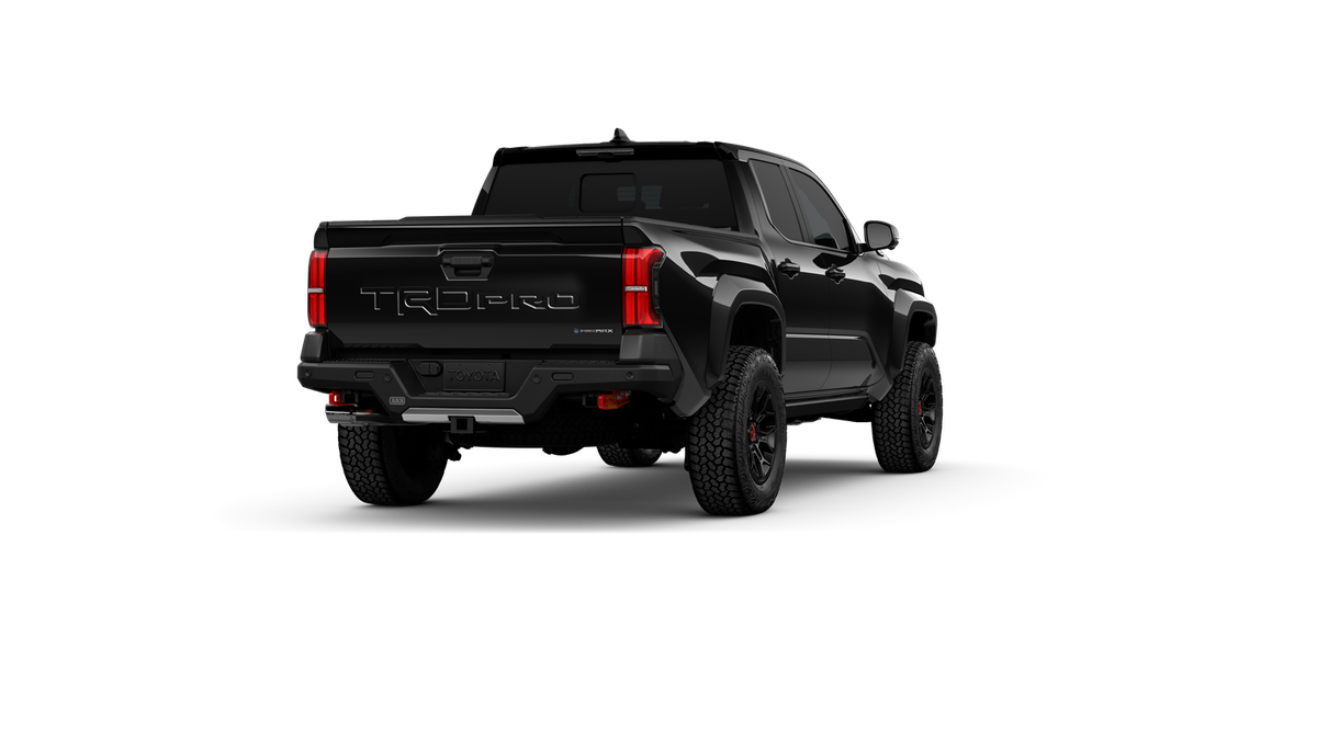 • "TRD Pro" stamped power open-and-close tailgate with hands-free knee-lift assist, integrated taillight bump switches, and jam protection