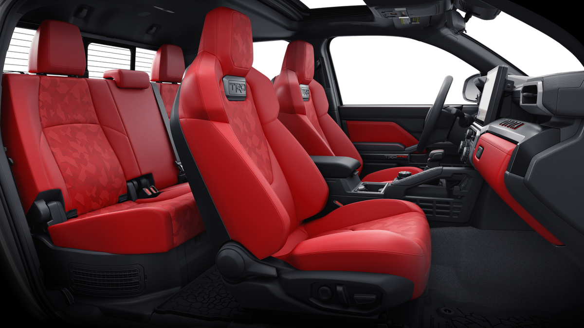 • TRD Pro SofTex®-trimmed IsoDynamic Performance seats with contrast stitching and technical-camo-pattern inserts; heated and ventilated 6-way power-adjustable driver and front passenger seats with 2-way manual recline and 4-way power-adjustable lumbar support