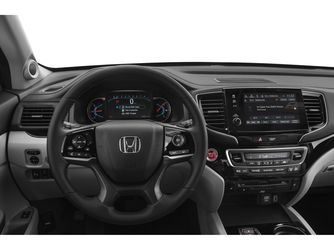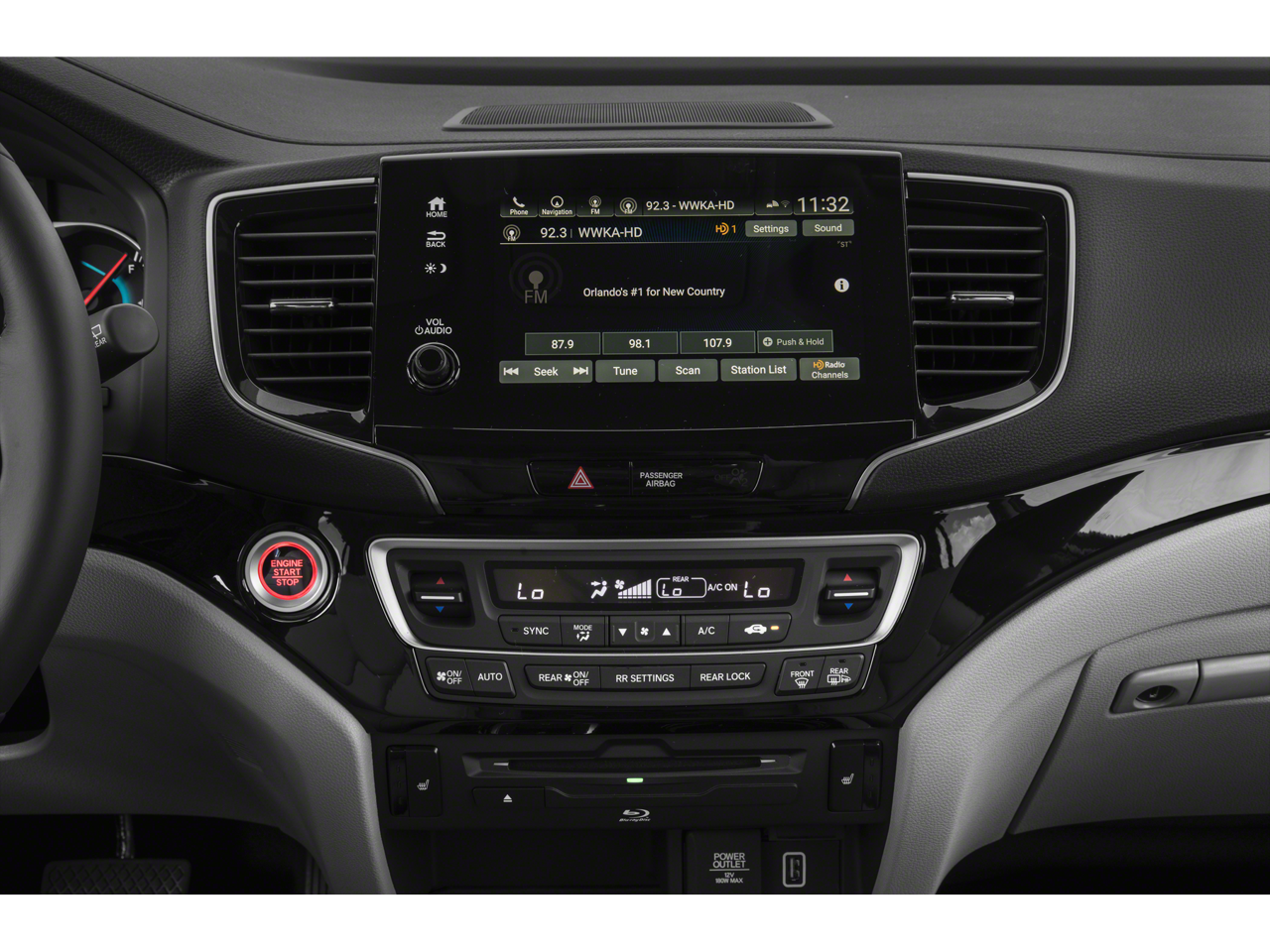 - Radio: 590-Watt Premium Audio System -inc: 10 speakers, subwoofer, 8" display audio w/high-resolution electrostatic touch-screen and customizable feature settings, 2.5-amp USB smartphone/audio interface front console (1 port), Bluetooth® HandsFreeLink, Bluetooth® streaming audio, MP3/auxiliary input jack, Radio Data System (RDS), Speed-Sensitive Volume Compensation (SVC), 2.5-amp USB charging port in center console (1 port) and 2nd row (2 ports), HondaLink, CabinControl remote compatibility, Apple CarPlay integration, Android Auto integration, SMS text message function (Compatible w/select phones w/Bluetooth®, Your wireless carrier's rate plans apply, State or local laws may limit use of texting feature, Only use texting feature when conditions allow you to do so safely.), SiriusXM radio (SiriusXM services require a subscription after any trial period, If you decide to continue your SiriusXM service at the end of your trial subscription, the plan you choose will automatically renew and bill at then-current rates until you call SiriusXM at 1-866-635-2349 to cancel, See our customer agreement for complete terms at www.siriusxm.com, Fees and programming subject to change, Available in the 48 contiguous United States and D.C, SiriusXM and all related marks and logos are trademarks of SiriusXM Radio Inc, HD Radio, CabinTalk in-car PA system through headphones, HondaLink subscription services (HondaLink subscription services come w/complimentary trials of security for 1 year and a remote/concierge trial for 3 months, Enrollment is required to access the remote/concierge trial and to access certain features of security, At the end of each trial period, purchase of a subscription is required to continue the respective services.), Wi-Fi hotspot capability (Requires AT&T data plan.) and multi-zone audio