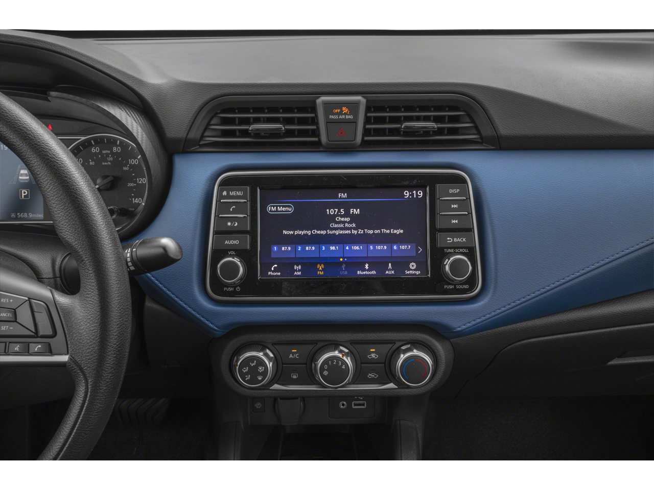 • Radio: AM/FM Audio System -inc: RDS, MP3, aux-in, 7" Advanced Drive-Assist Display, NissanConnect featuring Apple CarPlay and Android Auto, Bluetooth® hands-free phone system, streaming audio via Bluetooth®, interface for iPod and other compatible devices, hands-free text messaging assistant, Siri Eyes Free/Google Assistant voice recognition, 4 speakers and 3 USB ports (2-charge only)